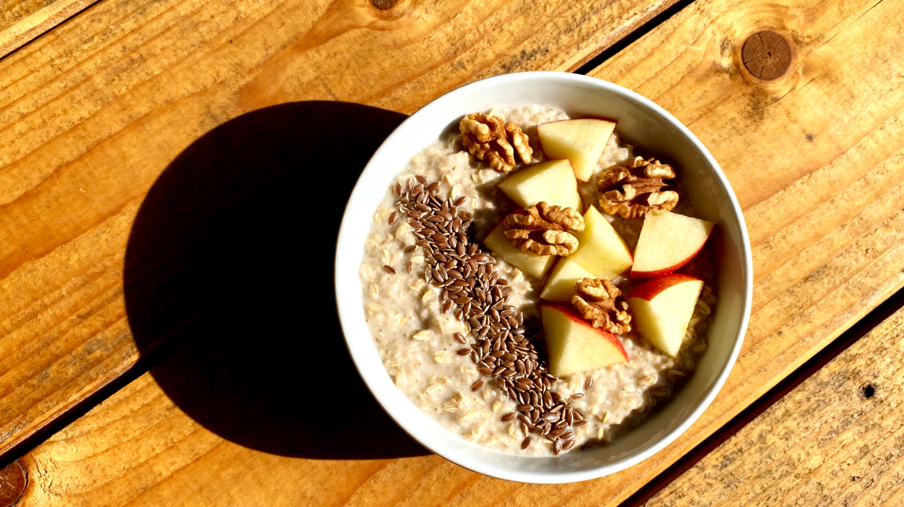 Wer morgens wenig Zeit hat, kann Haferflocken am Vorabend mit Flüssigkeit ansetzen – das sogenannte Overnight-Oats-Prinzip. Die Leinsamen quellen dabei bereits über Nacht vor, was die Verdaulichkeit weiter verbessert. Apfelstücke und Walnüsse werden dann morgens frisch hinzugefügt, fertig ist das perfekte Frühstück in unter zwei Minuten.